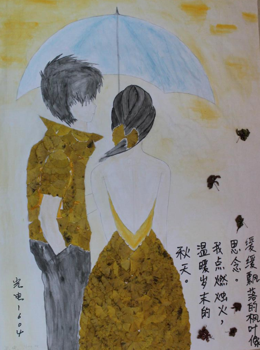 光电1604班“缓缓飘落的枫叶像思念,我点燃烛火,温暖岁末的秋天”。