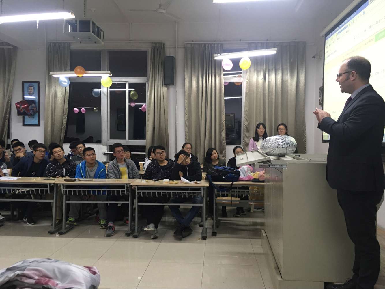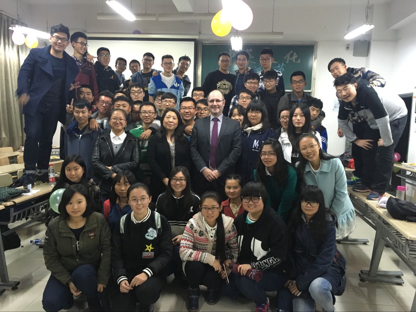 活动进行中,Dr Hastings Mckenzie的到来更是将活动带入了高潮,他以诙谐幽默的方式讲述自己的故事以及为同学们学习生活提供了建议。在接下来的问答时间里,同学们与Dr Hastings Mckenzie愉快交流,面对同学们形形色色的问题,Dr Hastings Mckenzie一一耐心解答的。最后,伴随着欢快的英国乡村音乐,Dr Hastings Mckenzie与参加的同学们拍照留念,本次英国文化节圆满落幕。