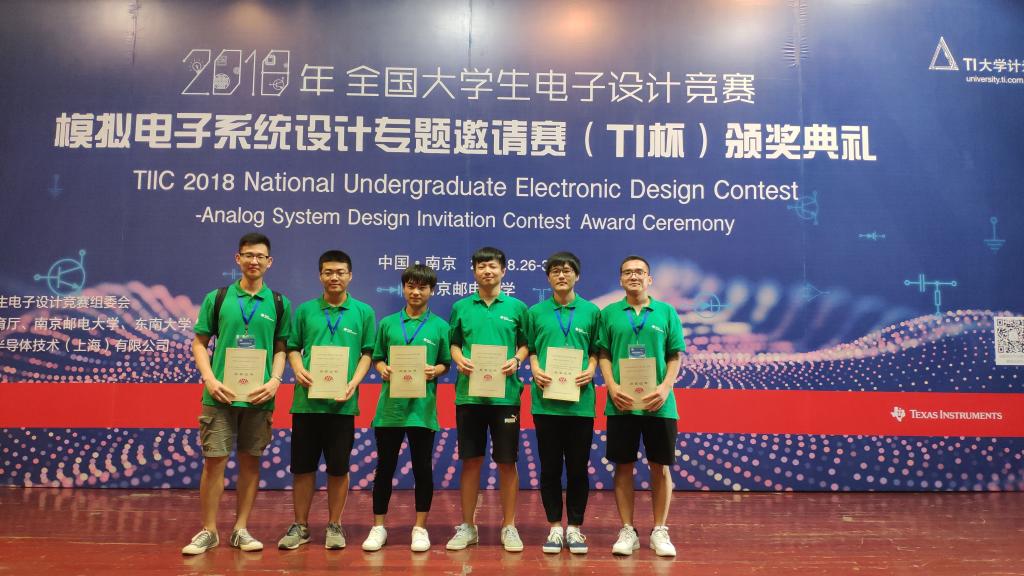 8月26日至30日,2018年全国大学生电子设计竞赛-模拟电子系统设计专题邀请赛在南京邮电大学举行。本届邀请赛共有来自19个省市59所院校的108支队伍参赛。欧洲杯官网葛海波教授指导的两支2015级学生团队获得嘉奖,其中选题为“简易直流电子负载”的邢晓博、党新明、严浩团队获全国二等奖,选题为“数字万用表”的李家渠、颜丙胜、郝诗馗团队获全国三等奖,为欧洲杯官网参赛以来的最佳成绩。