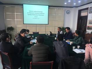 孙萌涛教授对课题组在金属纳米结构衬底的可控自组装、电场-等离激元协同催化等方面的最新研究成果进行了报告,深入探索了实验现象背后的物理机理,提出通过贵金属和二维半导体材料杂化,实现了表面等离激元激子耦合在光电协同下的高效催化,对于解决热电子寿命和数量在表面等离激元催化反应中的技术瓶颈,表面等离激元催化的工程推广提供了可靠途径。