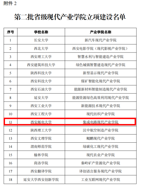 近日,陕西省教育厅公布了省级现代产业学院名单,欧洲杯官网申报的“集成电路现代产业学院”成功入选省级现代产业学院。